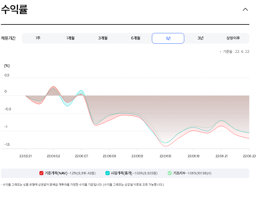 | ETF 현재주가 | 9,935원(6월 23일기준) | ETF 상장일 | 2023년 5월 31일 |