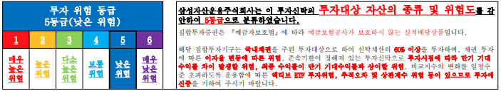 - KODEX 33-06 국고채액티브는 투자 위험 등급이 삼성자산운용에서 5등급으로 분류하여 낮은 위험 등급이니 투자하실 때 참조하시기 바랍니다.